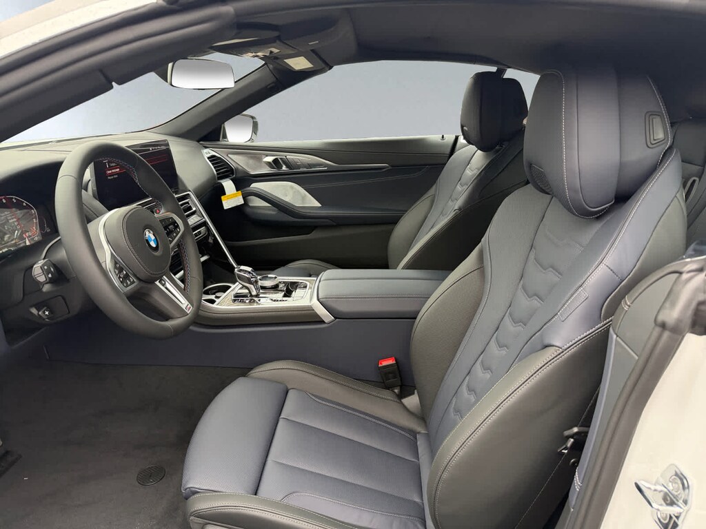 BOWERS & WILKINS DIAMOND SURROUND SOUND SYSTEM, DRIVING ASSISTANCE PROFESSIONAL PACKAGE Distance Control (ACC) w/Steering Assistant, Driving Assistant Professional, Partial Automated Driving, Traffic Jam Assistant, hands-free driving up to 40 mph on selected highways, DRIVING ASSISTANCE PACKAGE Parking View w/3D View (Surround View), Rear View Camera, Driving Assistant, Active Blind Spot Detection, Active Park Distance Control w/Side Protection, Parking Assistant Plus. Navigation, All Wheel Drive, Power Liftgate, Turbocharged, Satellite Radio, iPod/MP3 Input, Onboard Communications System, Aluminum Wheels, Remote Engine Start, Dual Zone A/C, Smart Device Integration, Apple CarPlay®, WiFi Hotspot, Hands-Free Liftgate BMW M850i xDrive with Mineral White Metallic exterior and Night Blue/Black interior features a 8 Cylinder Engine with 523 HP at 5500 RPM*. Leather Seats, MP3 Player, Quad Bucket Seats, Heated Driver Seat, Cooled Driver Seat.